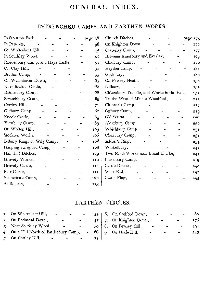 Page 2 General Index,Intrenched Camps and Earthen Works;Earthen Circles