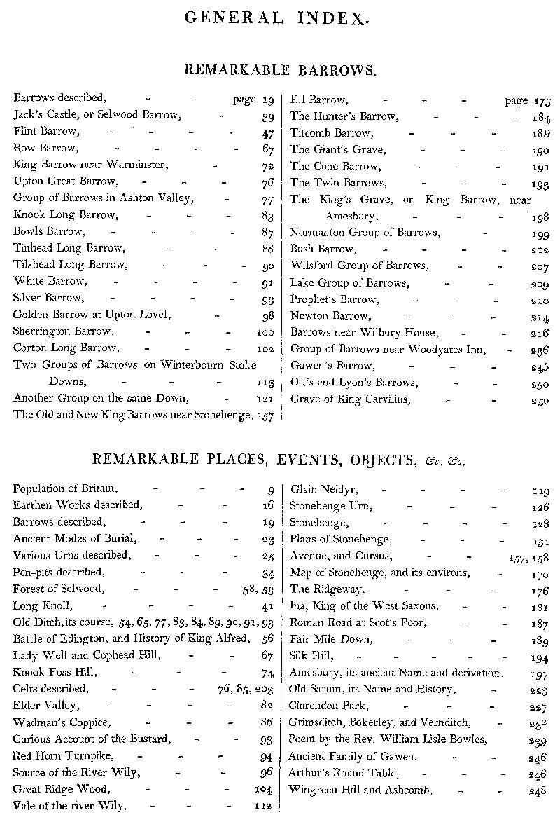 Page 3 General Index,Remarkable Barrows; Remarkable Place, Events, Objects etc