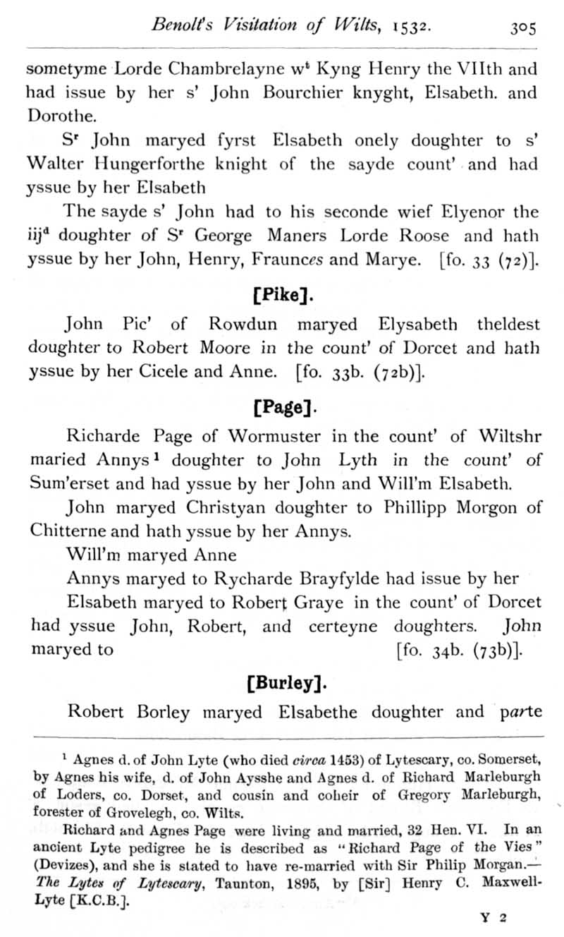 Page 4 Benolt's Visitation of Wiltshire, 1532 : John Bourchies, John Pike, Richard Page and Robert Burley.