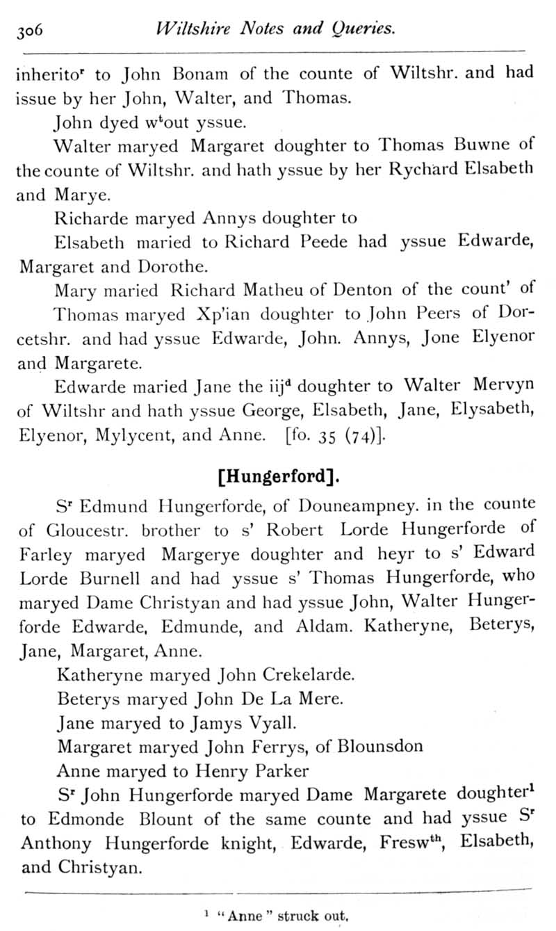 Page 5 Benolt's Visitation of Wiltshire, 1532 : Robert Borley and Sir Edmund Hungerford.