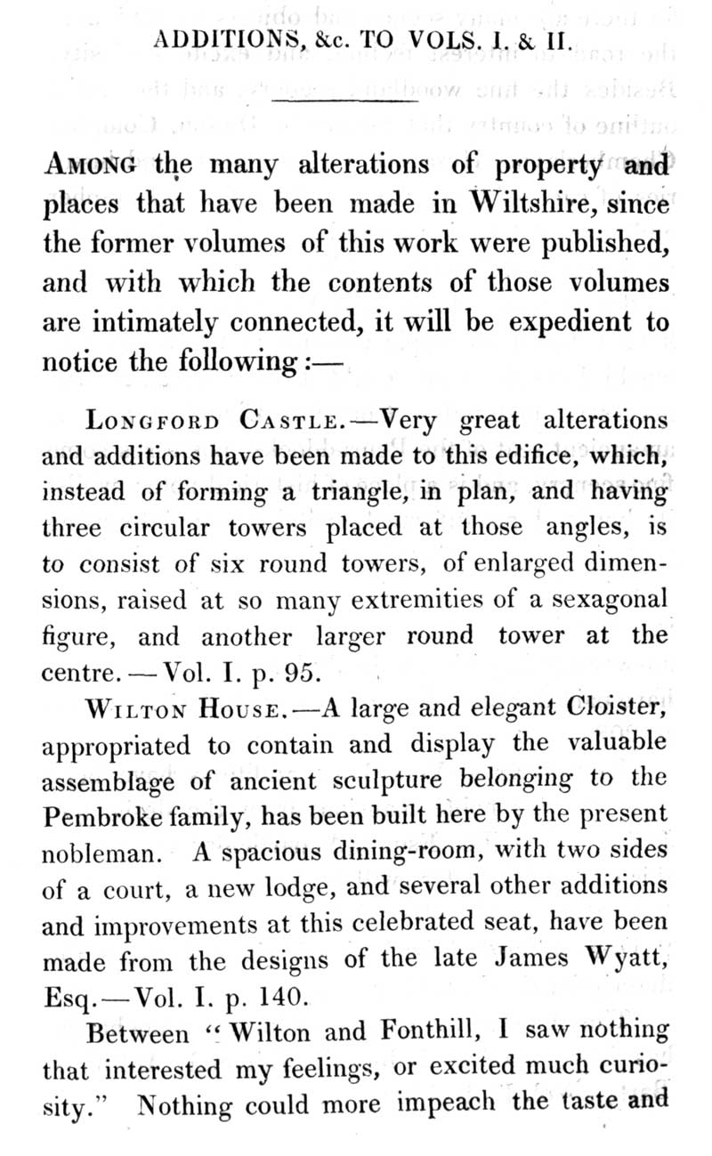 Page 54 Additions to Vols 1 and 2 ; Langford Castle, Wilton House.