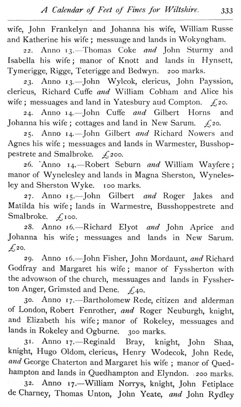 Page 32 A calendar of feet of fines for Wiltshire in the reign of Henry VII.