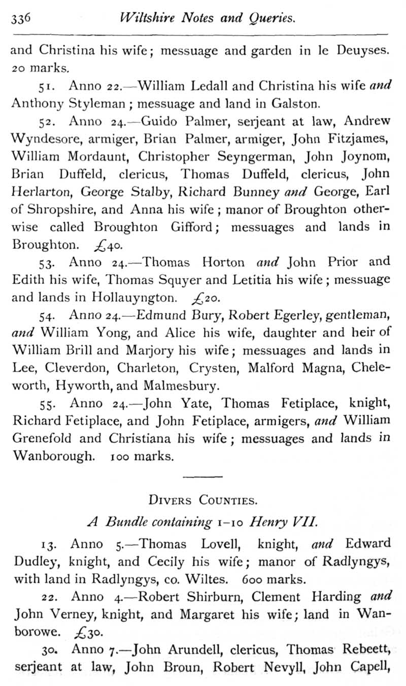Page 35 A calendar of feet of fines for Wiltshire in the reign of Henry VII.