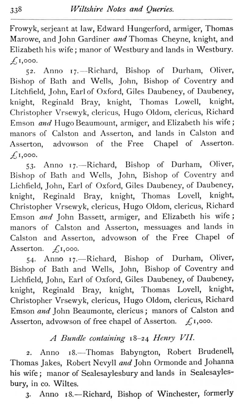Page 37 A calendar of feet of fines for Wiltshire in the reign of Henry VII.