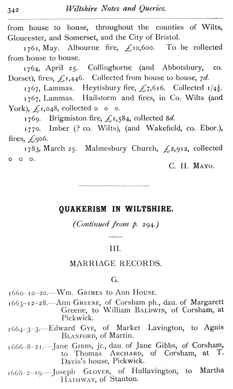 Page 41 Wiltshire Briefs : Long Barton (Dorset) collections. Quakers in Wiltshire; marriage records.