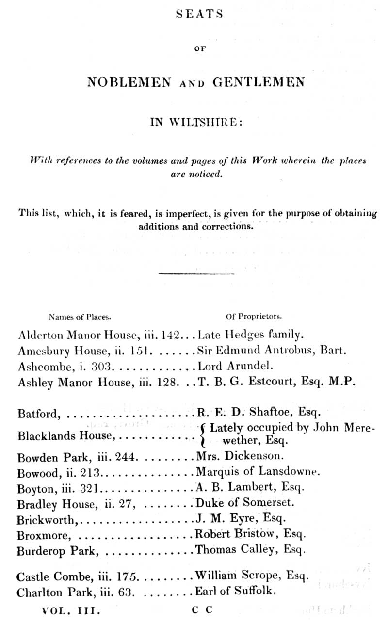 Page 17 Seats of noblemen and gentlemen in Wiltshire.