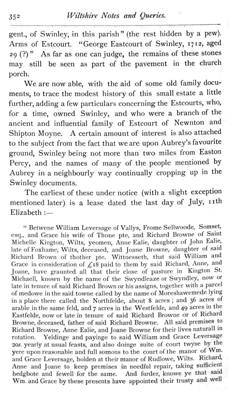 Page 3 Escourt family of Swinley, Kington St Michael.
