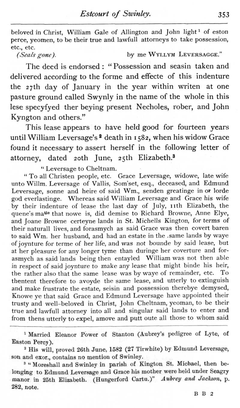 Page 4 Escourt family of Swinley, Kington St Michael.