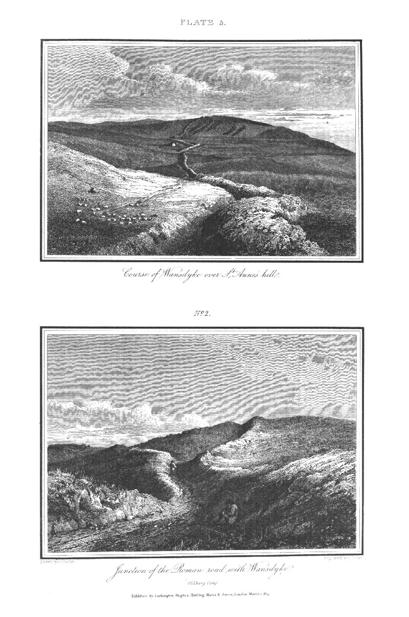Page 33 Illustrations: course of Wansdyke over St Anne's Hill; Junction of the Roman road with Wansdyke.