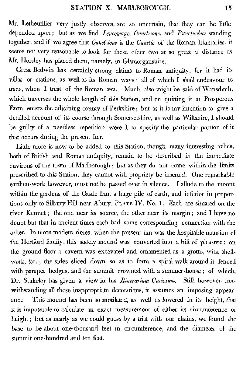Page 18 Discussion of place names mentioned by Stukeley and Ravenna Cosmology: Leucomago, Cunetzione; Punctuobice. Possible Roman origins of Great Bedwyn; Wansdyke;Marlborough Mound and Silbury Hill.