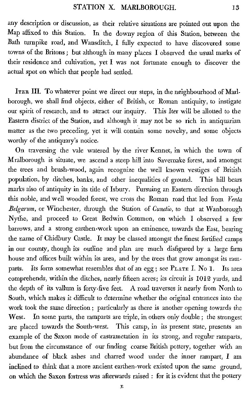 Page 15 Savernake Forest; British occupation earthworks at Isbury Hill; Roman road to Cunetio and Wanborough Nythe; Great Bedwyn Common: barrows; Chidbury Castle.