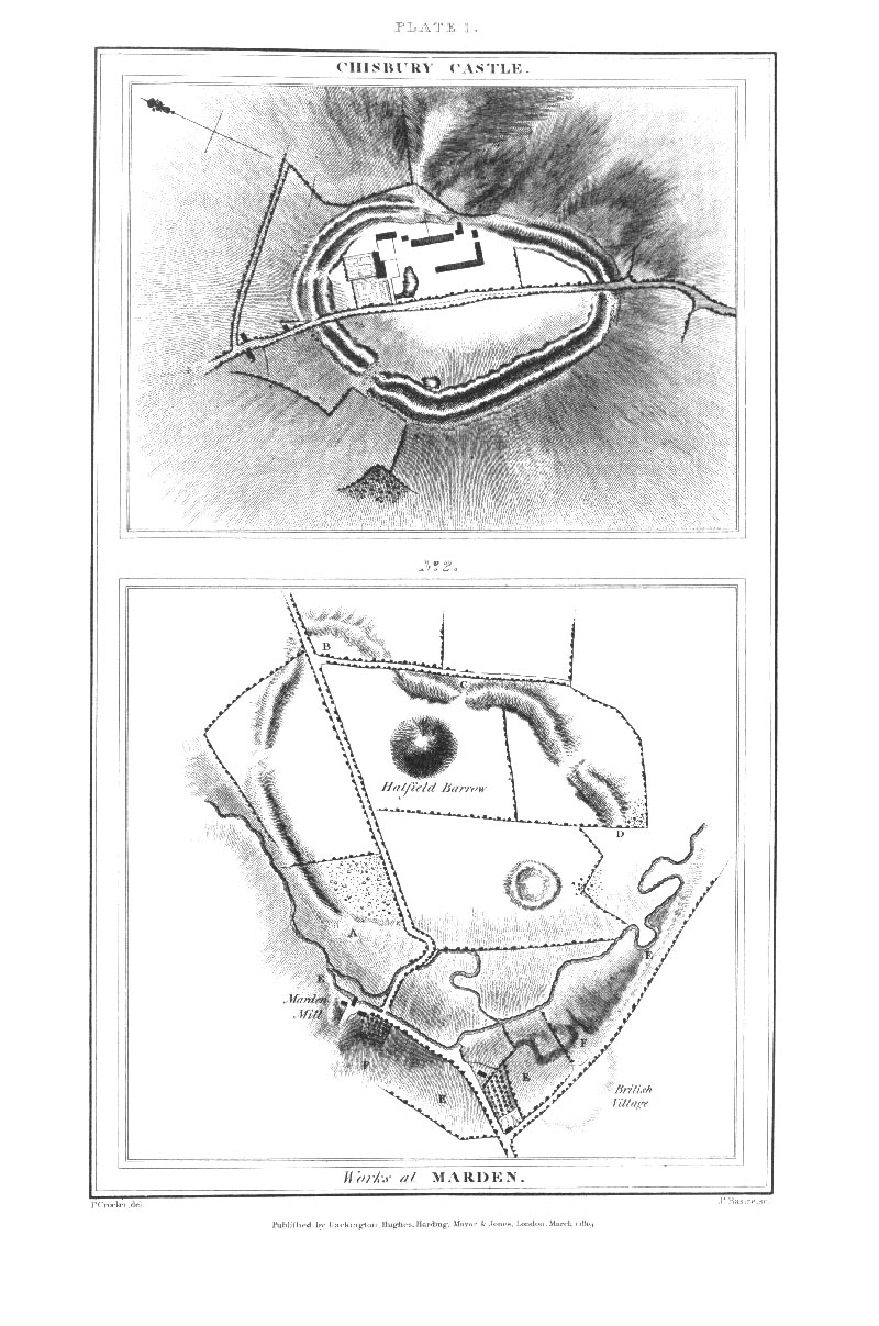 Page 4 Marlborough,Illustration: plans of Chisbury Camp and earthworks at Marden