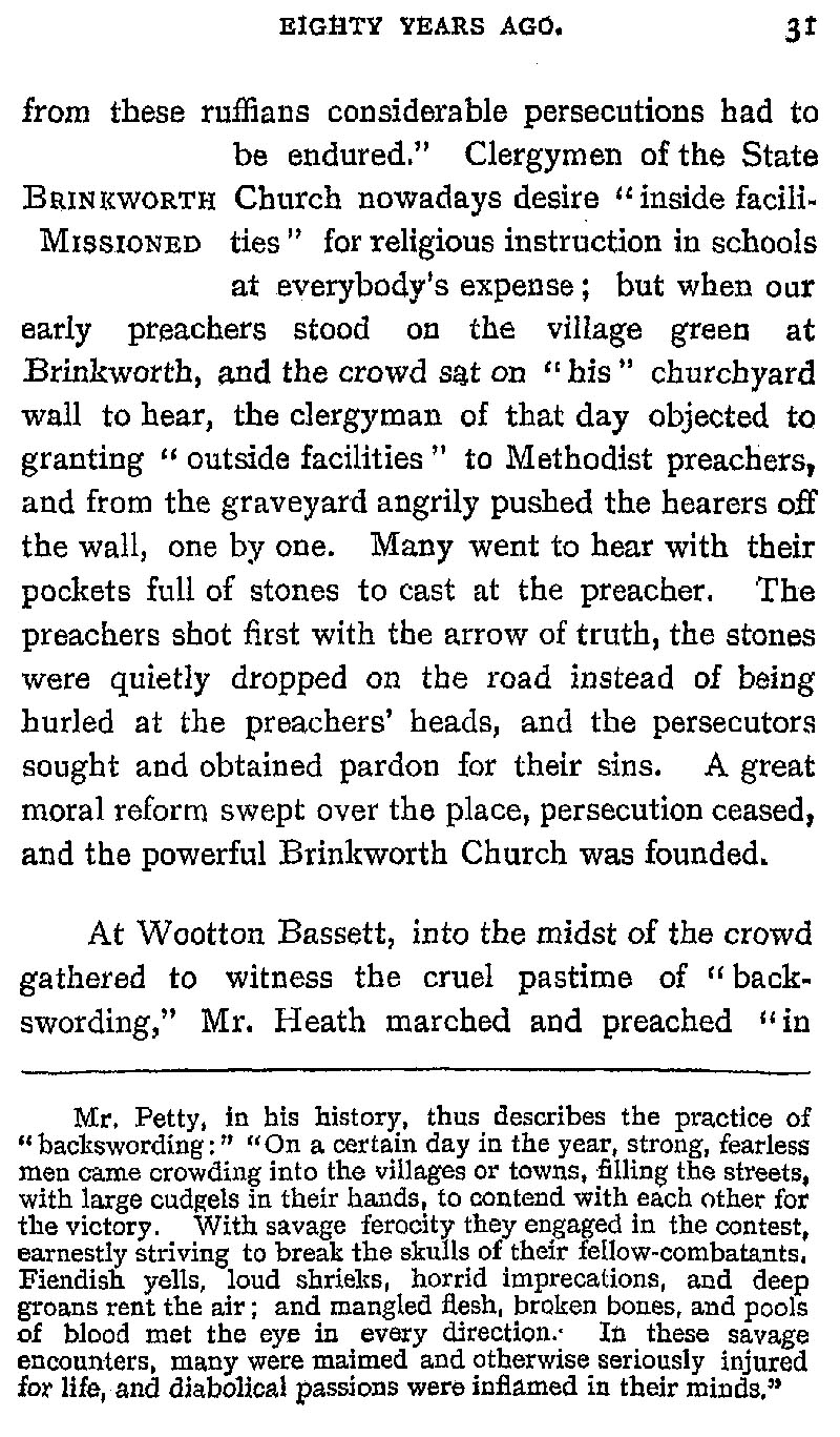 Page 5 The Brinkworth Circuit in the 1820s ; John Cennick, events at Wootton Bassett and Malmesbury.