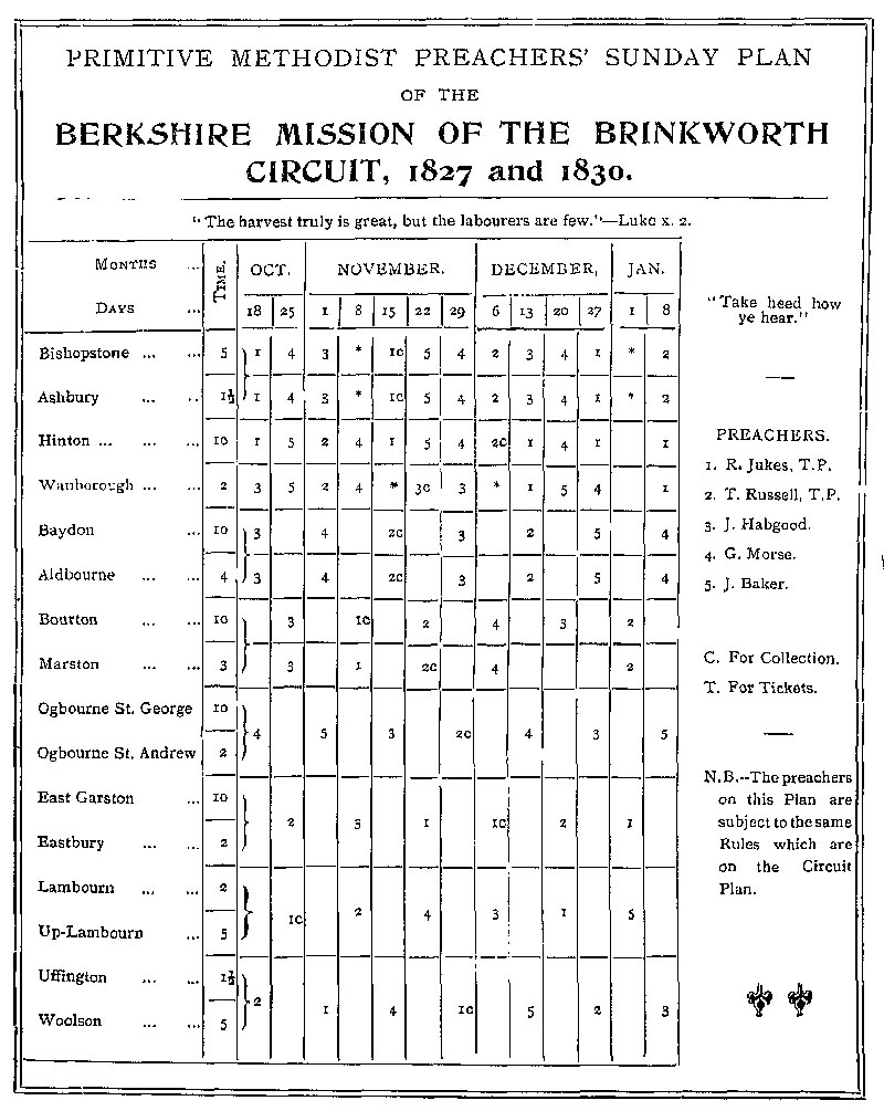 Page 7 Preaching plan of the Berkshire Mission of the Brinkworth Circuit, 1827 and 1830.