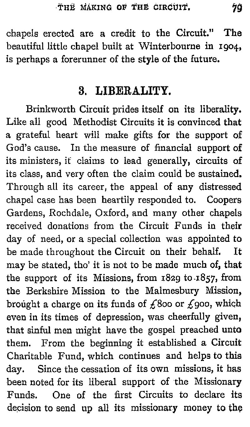 Page 13 Chapel building in the Brinkworth Circuit; funding and hospitality in the Brinkworth Circuit.