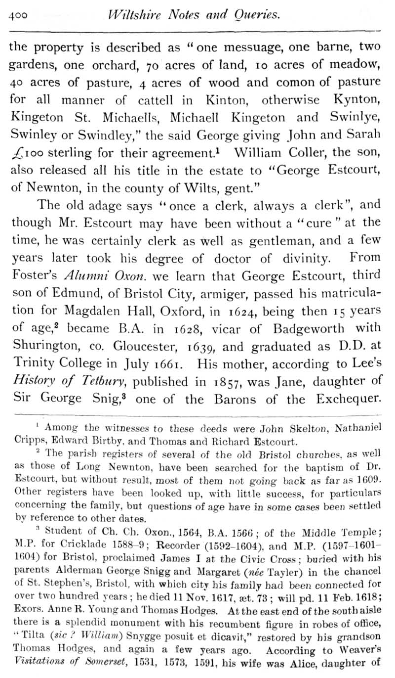 Page 3 Estcourt family of Swinley, Kington St Michael.