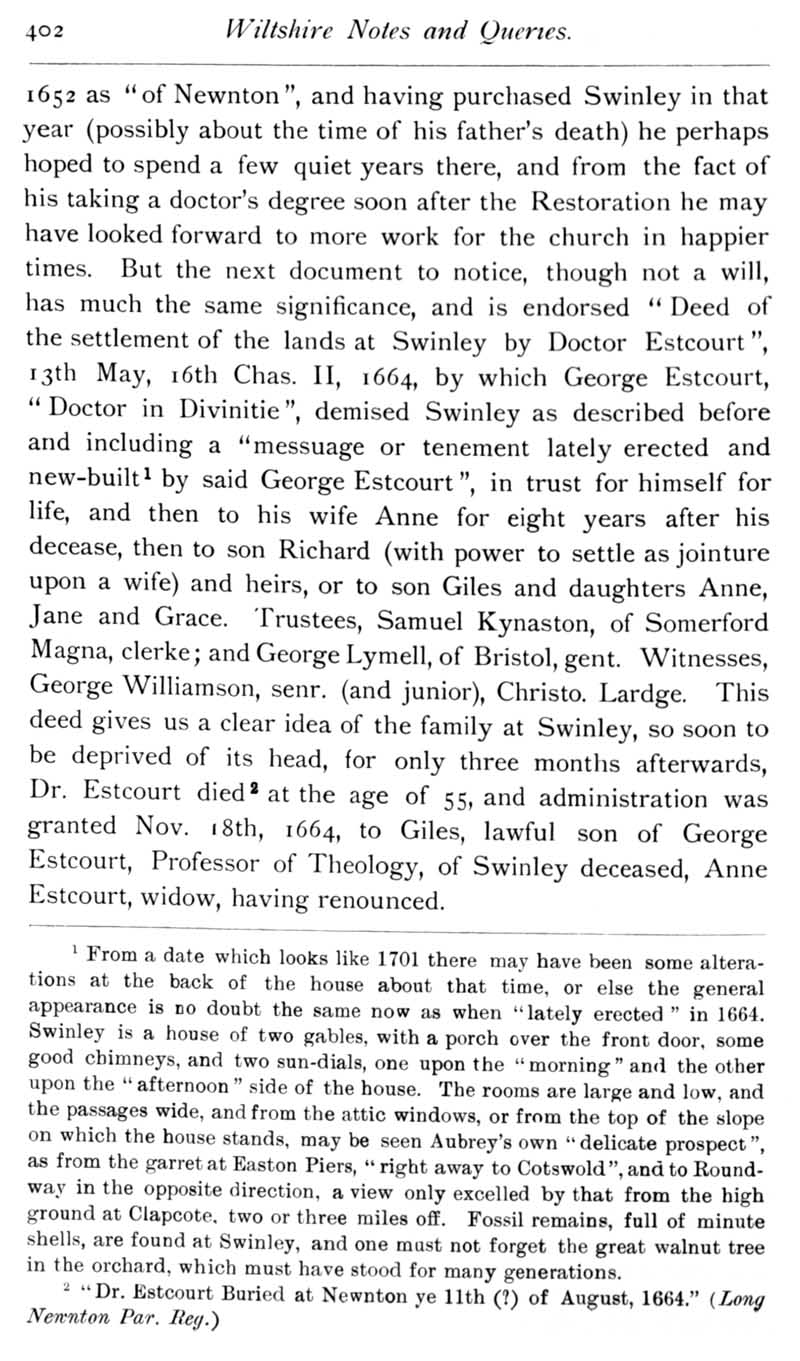 Page 5 Estcourt family of Swinley, Kington St Michael.