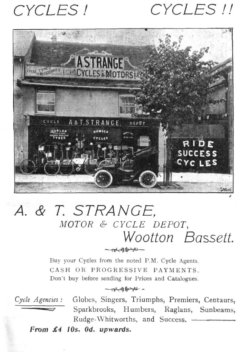 Page 59 Advertisement and photograph of A & T Strange, motor and cycle depot, Wootton Bassett, 1907.