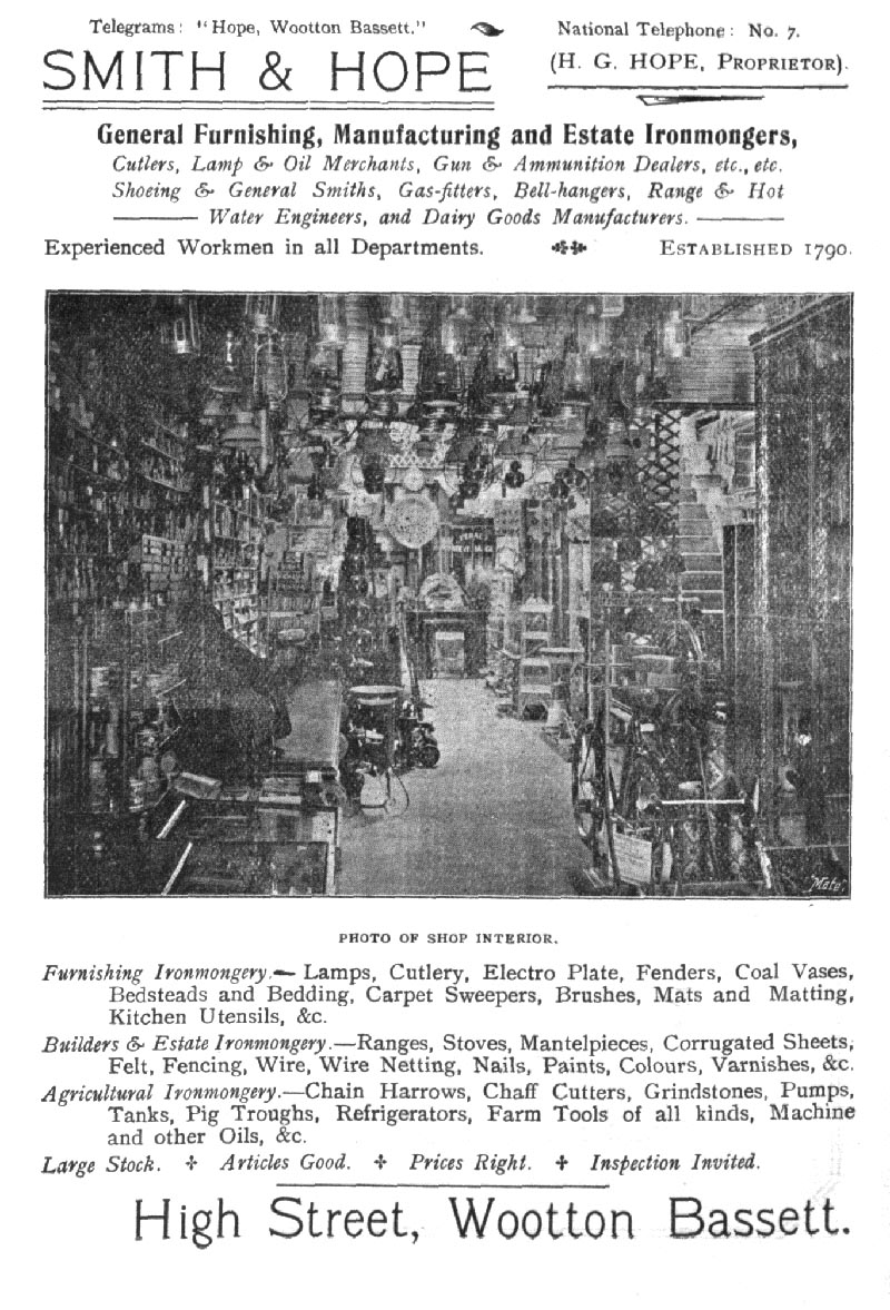 Page 62 Advertisement and photograph; Smith & Hope, Wootton Bassett, 1907.