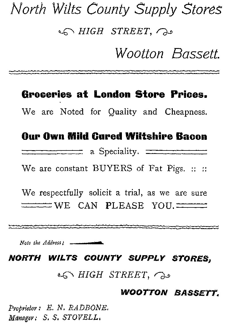 Page 63 Advertisement; North Wilts County Supply Stores, Wootton Bassett, 1907.