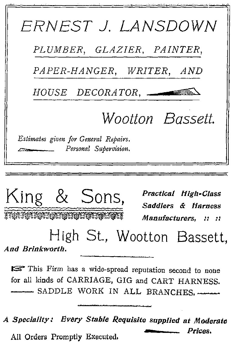 Page 66 Advertisement; Ernest J Lansdown, Wootton Bassett, 1907 ; King & Sons, Wootton Bassett, 1907.