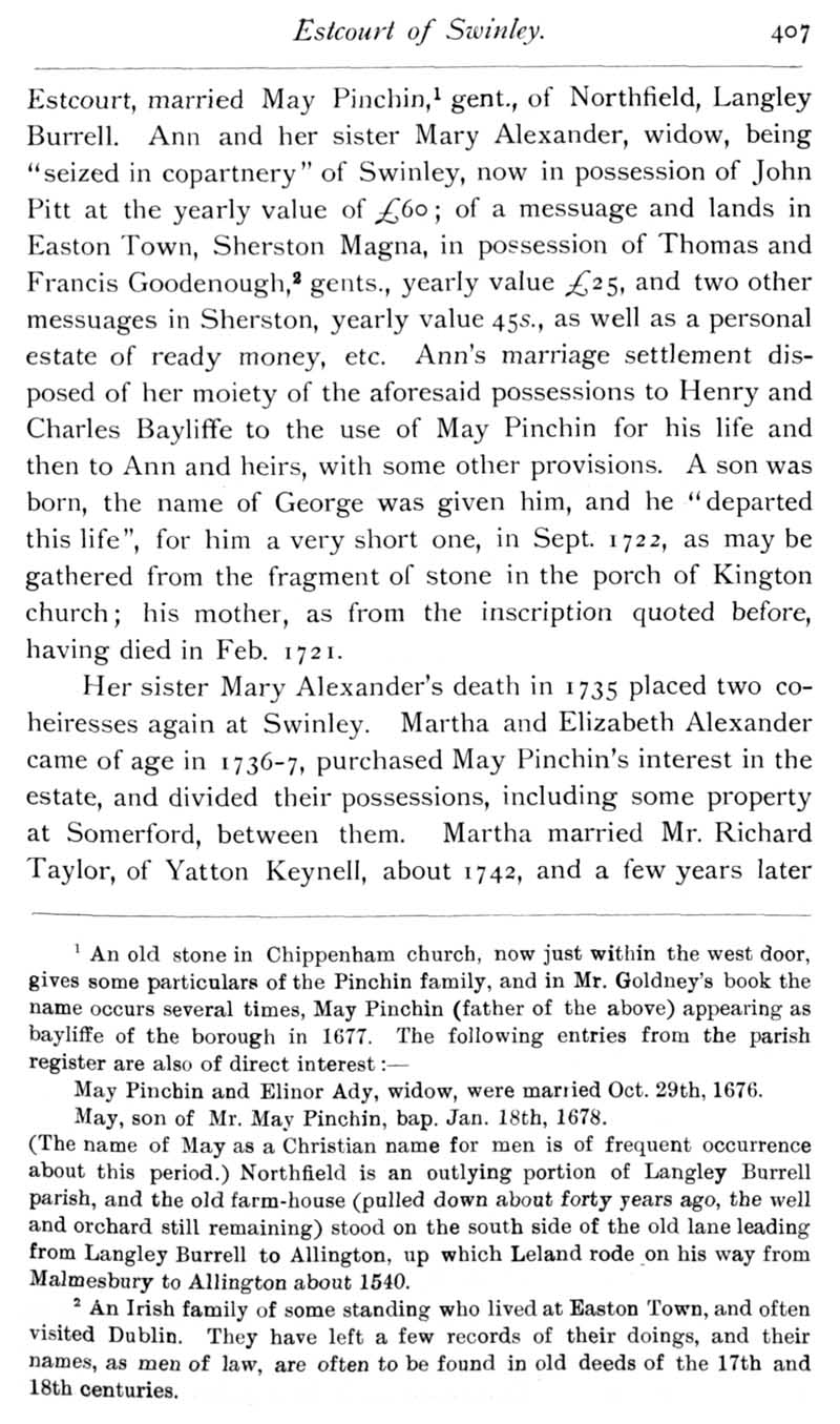 Page 10 Estcourt family of Swinley, Kington St Michael.
