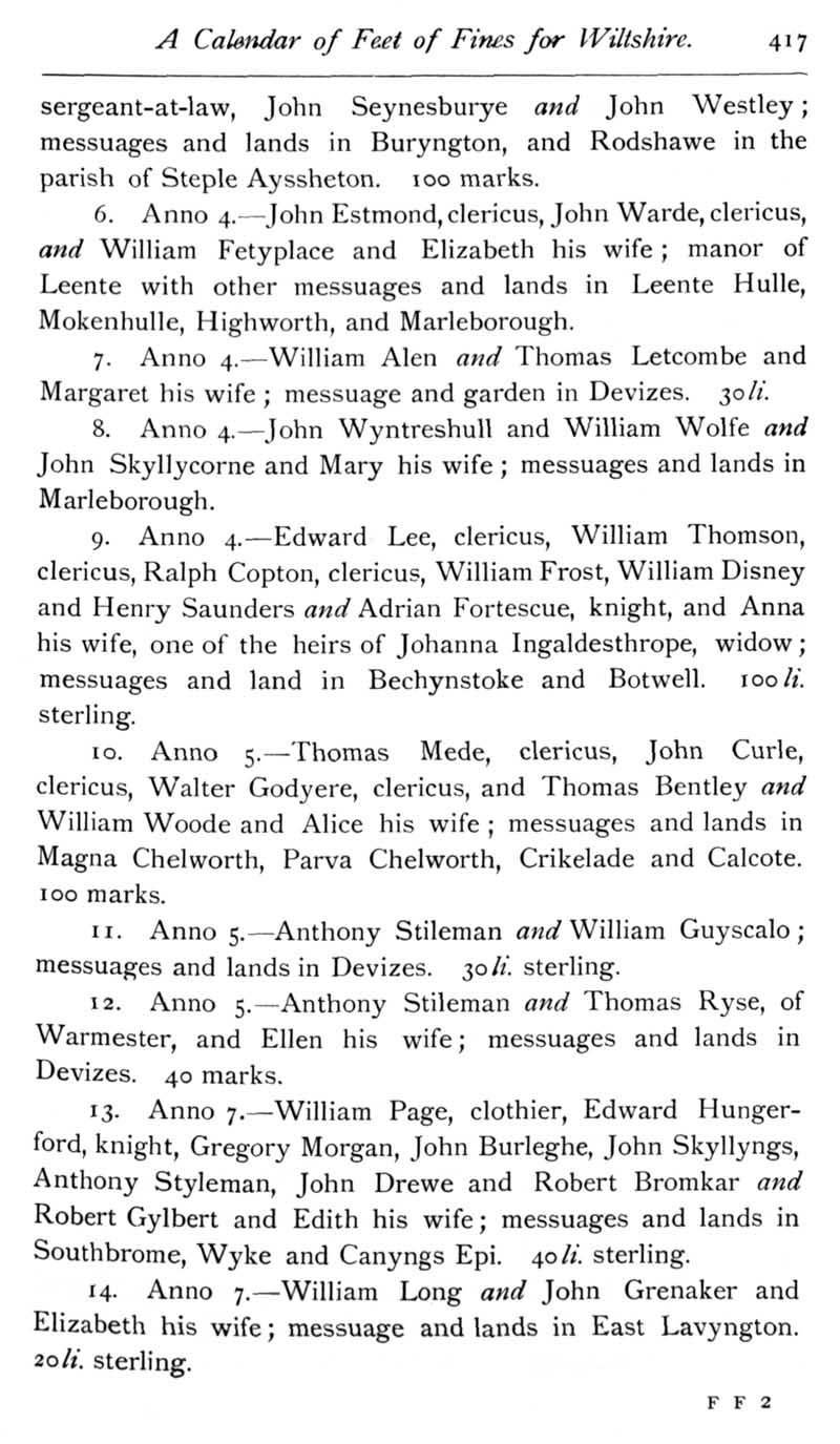 Page 20 Calendar of Feet of Fines for Wiltshire in the reign of Henry VIII.