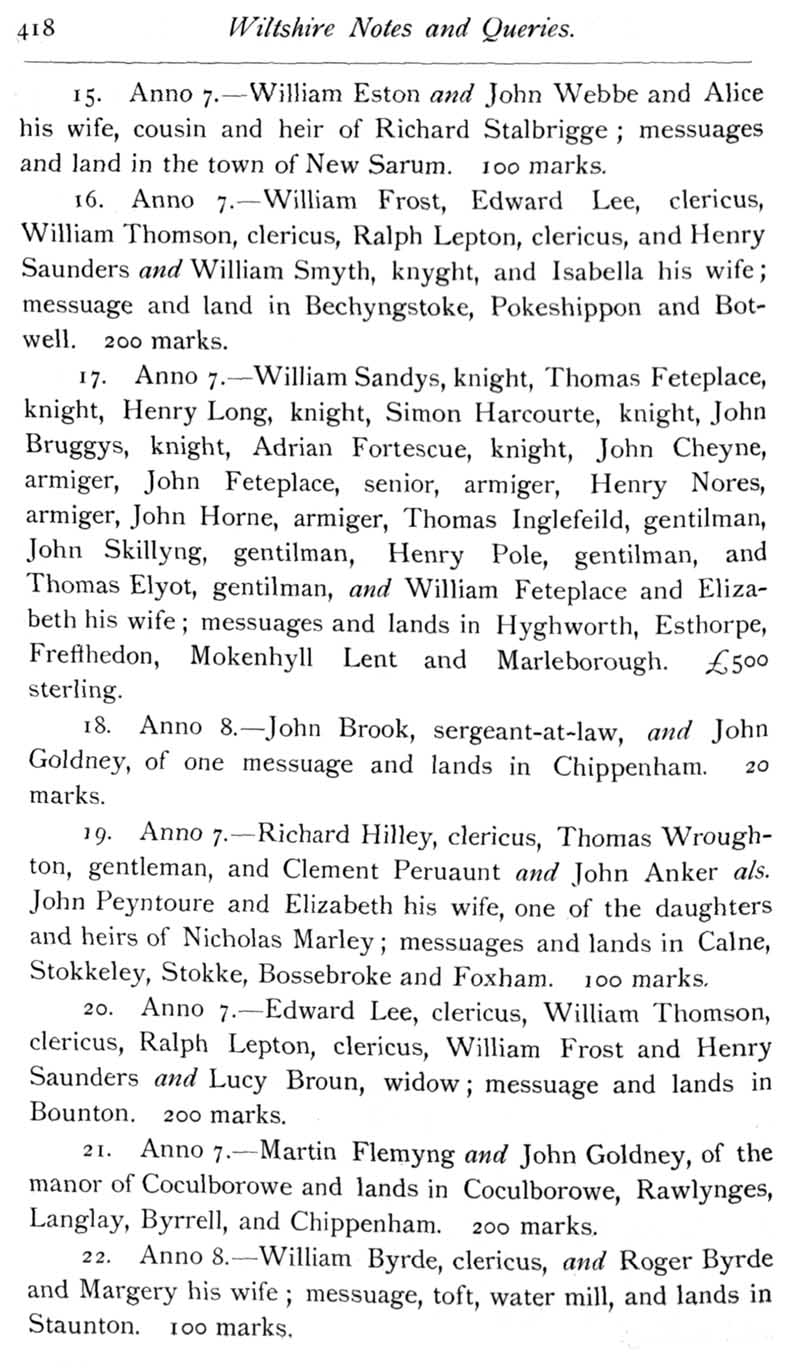 Page 21 Calendar of Feet of Fines for Wiltshire in the reign of Henry VIII.