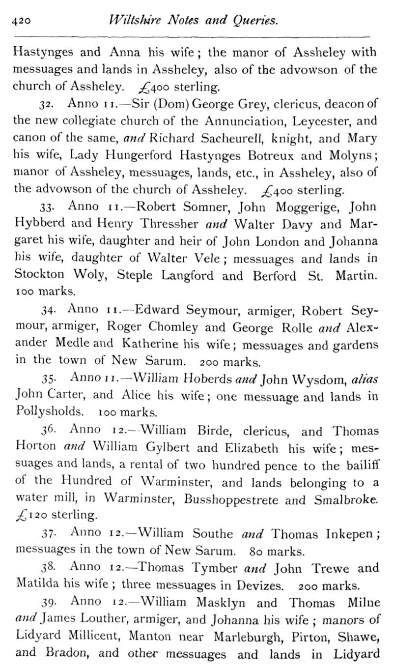 Page 23 Calendar of Feet of Fines for Wiltshire in the reign of Henry VIII.