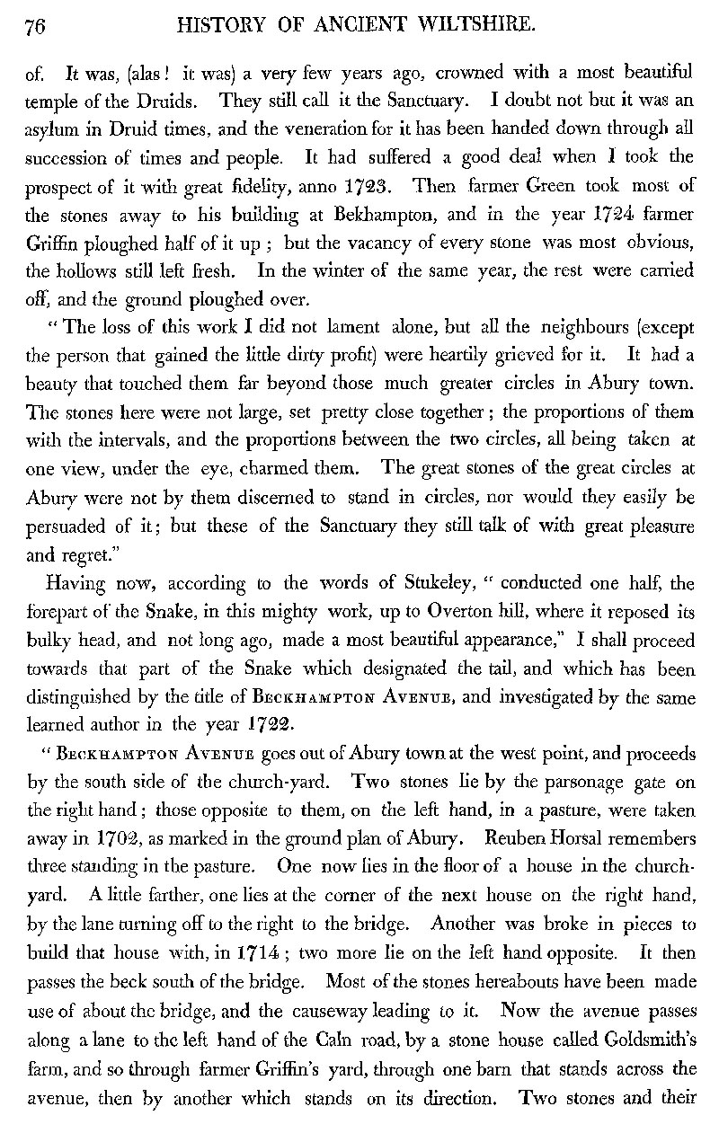 Page 27 Consideration of the other monuments described by Stukeley. The Sanctuary, removeal of stones by the farmer 1723. Beckhampton Avenue.