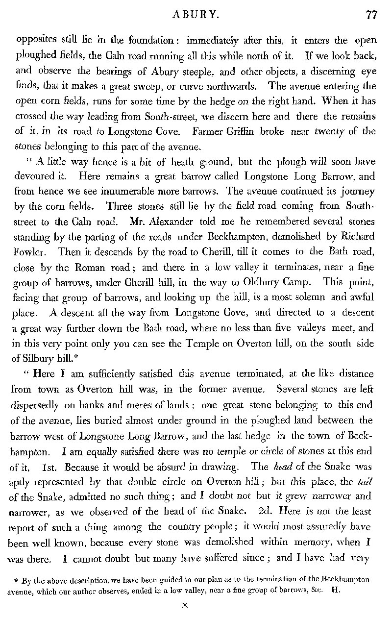 Page 28 Consideration of the other monuments described by Stukeley. Avenue: route via South Street to Long Stones Cove. Possible route through fields to Cherill and Oldbury Camp.