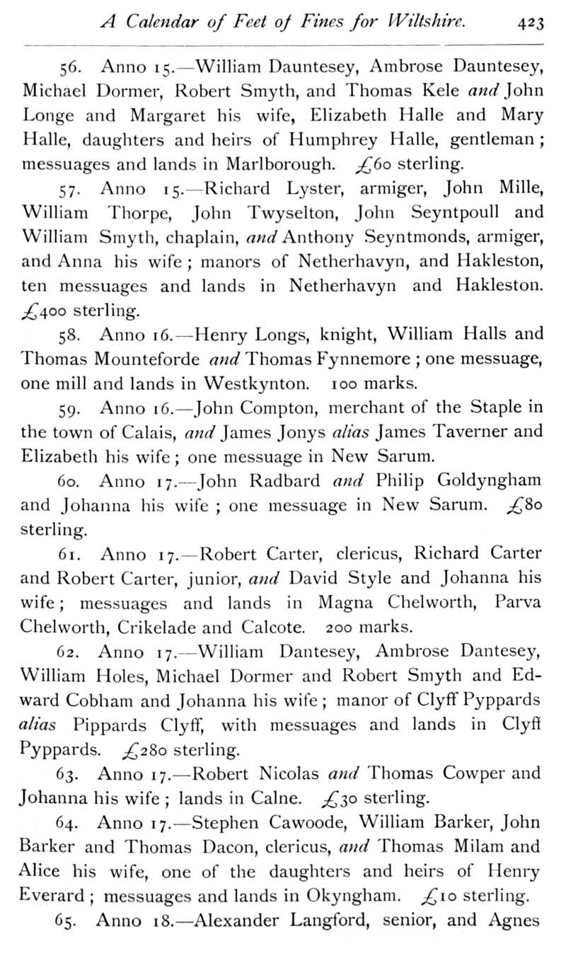 Page 26 Calendar of Feet of Fines for Wiltshire in the reign of Henry VIII.