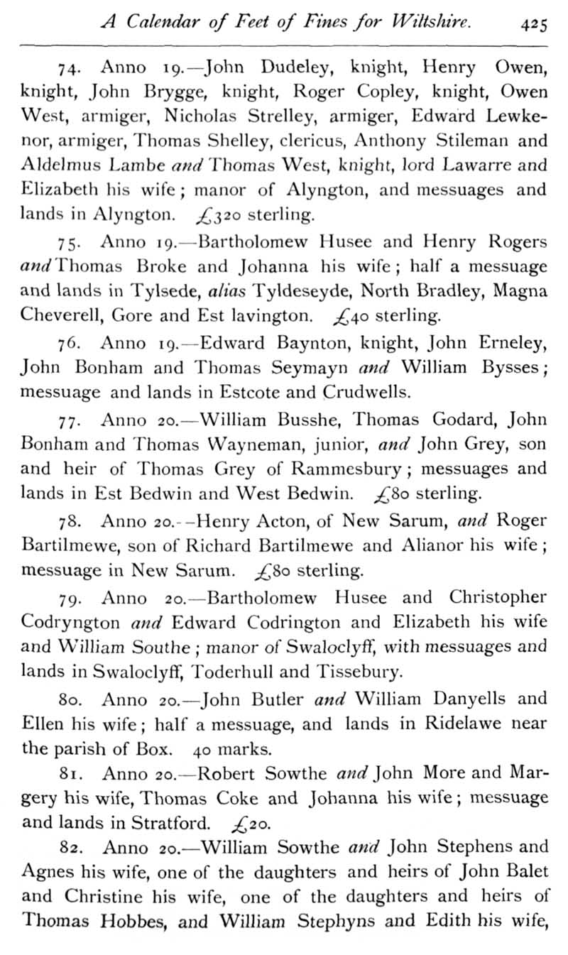 Page 28 Calendar of Feet of Fines for Wiltshire in the reign of Henry VIII.