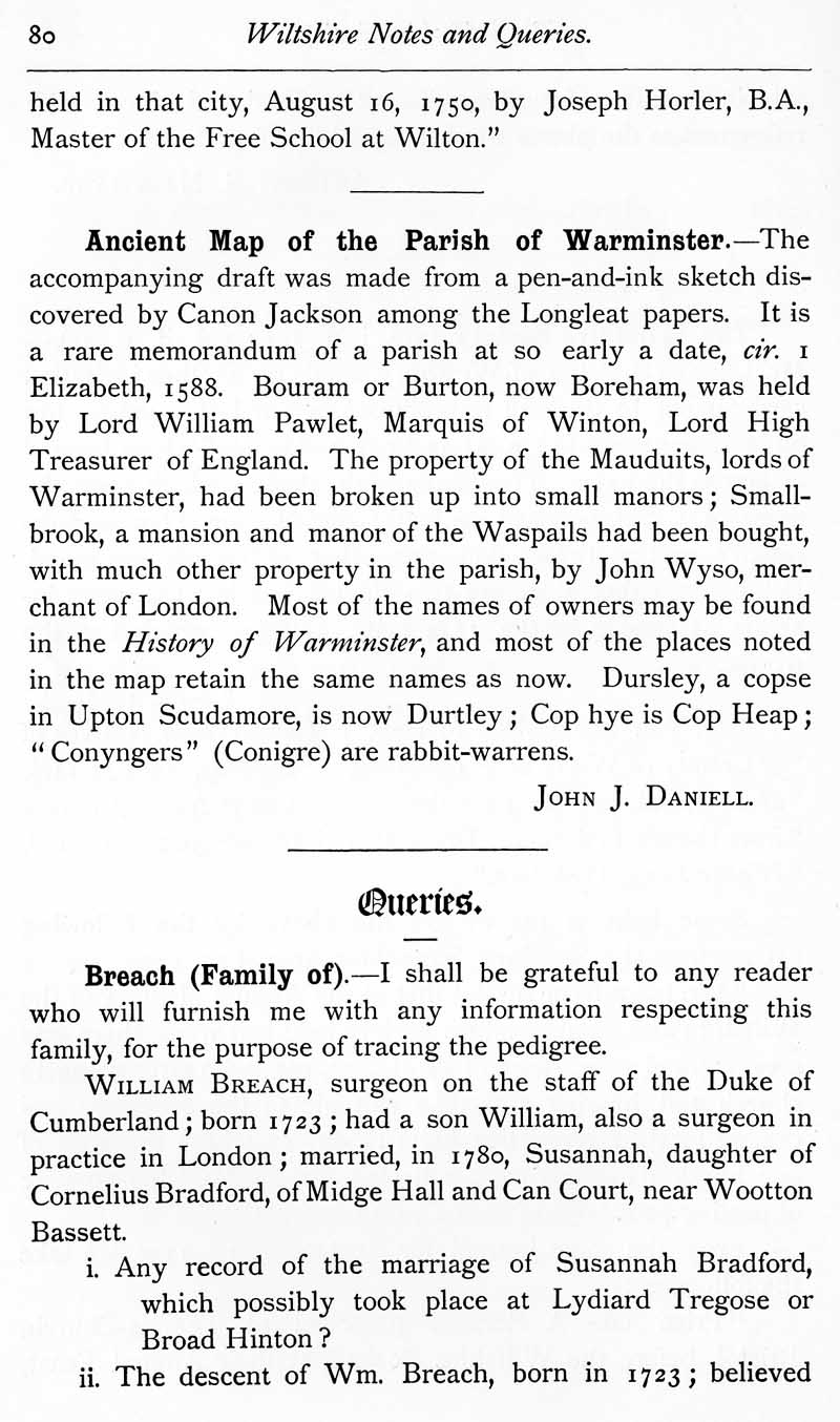 Page 33 The Wiltshire Society. Notes on map of Warminster c1588 or c1558.