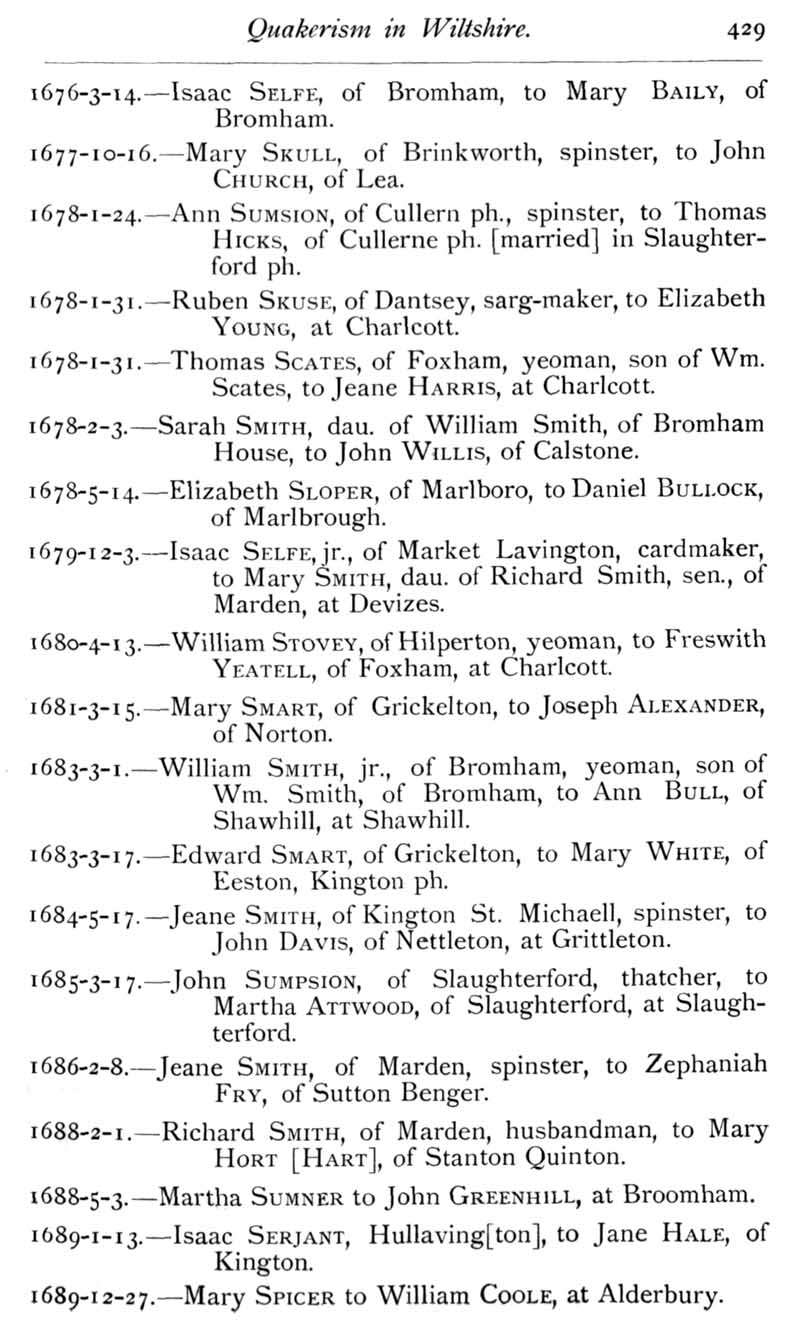 Page 32 Quakers in Wiltshire; marriage records.