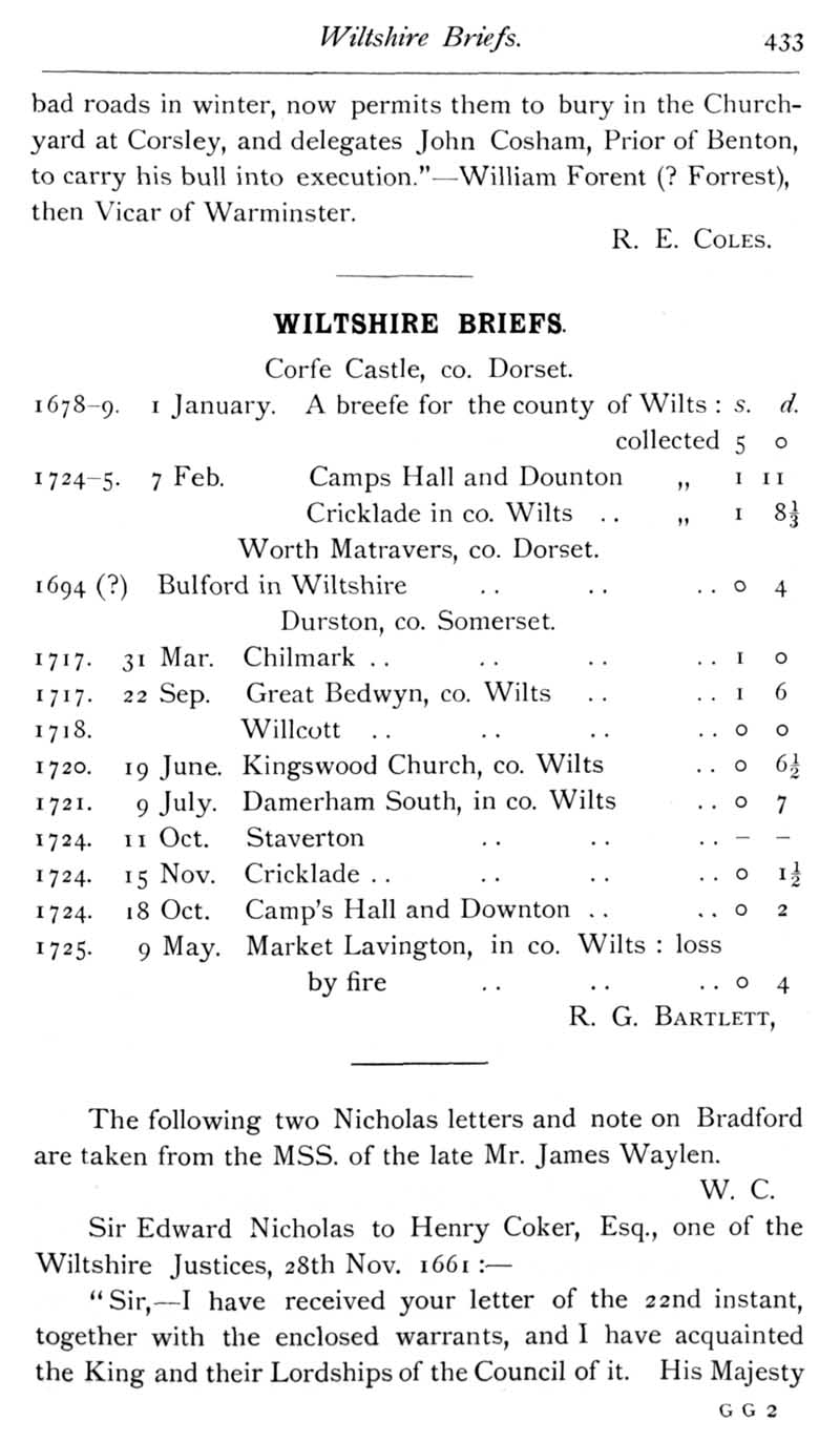 Page 36 Quakers in Wiltshire; marriage records. Wiltshire Briefs collected at Corfe Castle, Dorset.