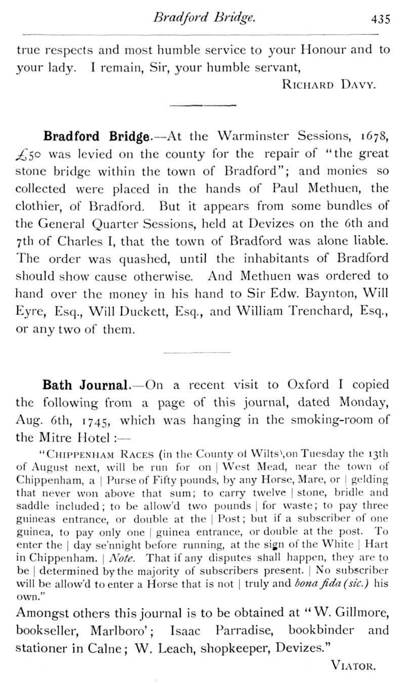Page 38 Repair of Bradford on Avon bridge, 1678. Chippenham races, 1745.