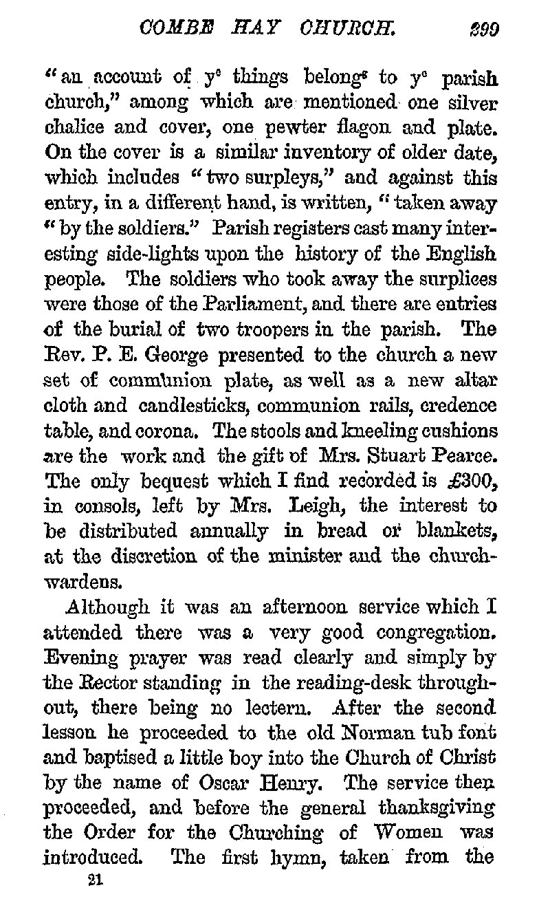 Page 318 History of the church of Combe Hay, Bath.