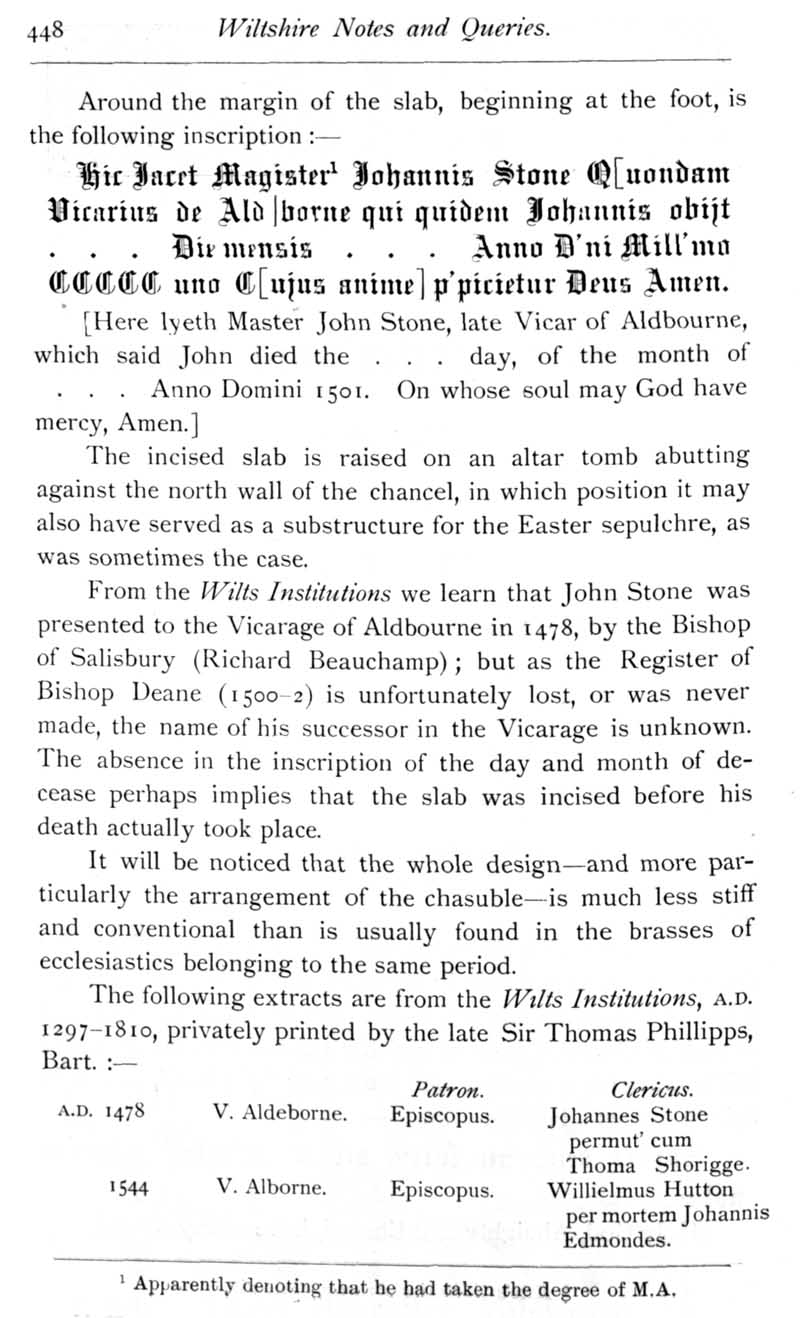 Page 3 Aldbourne; effigies in church, bell foundry of the Corr family.