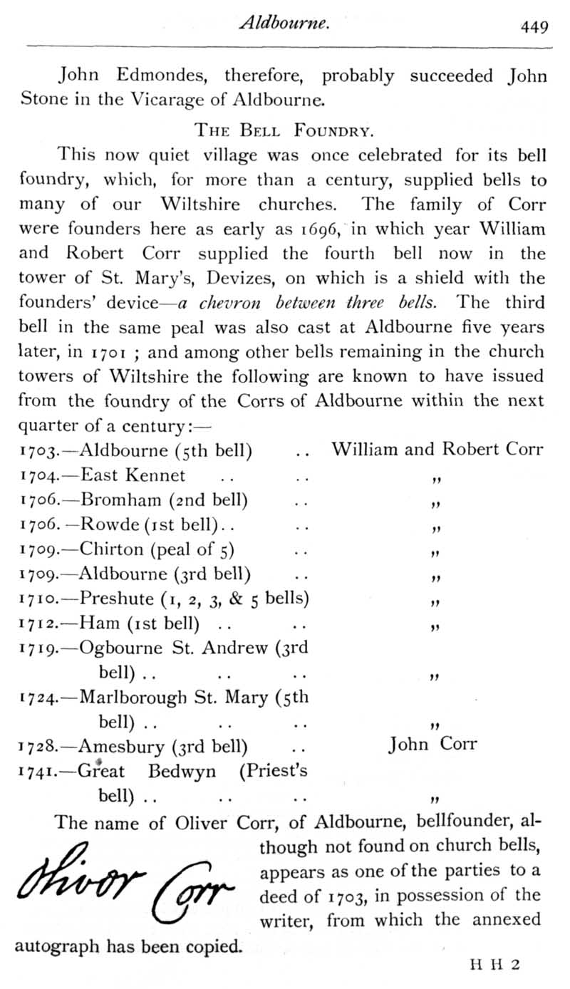 Page 4 Aldbourne; effigies in church, bell foundry of the Corr family.