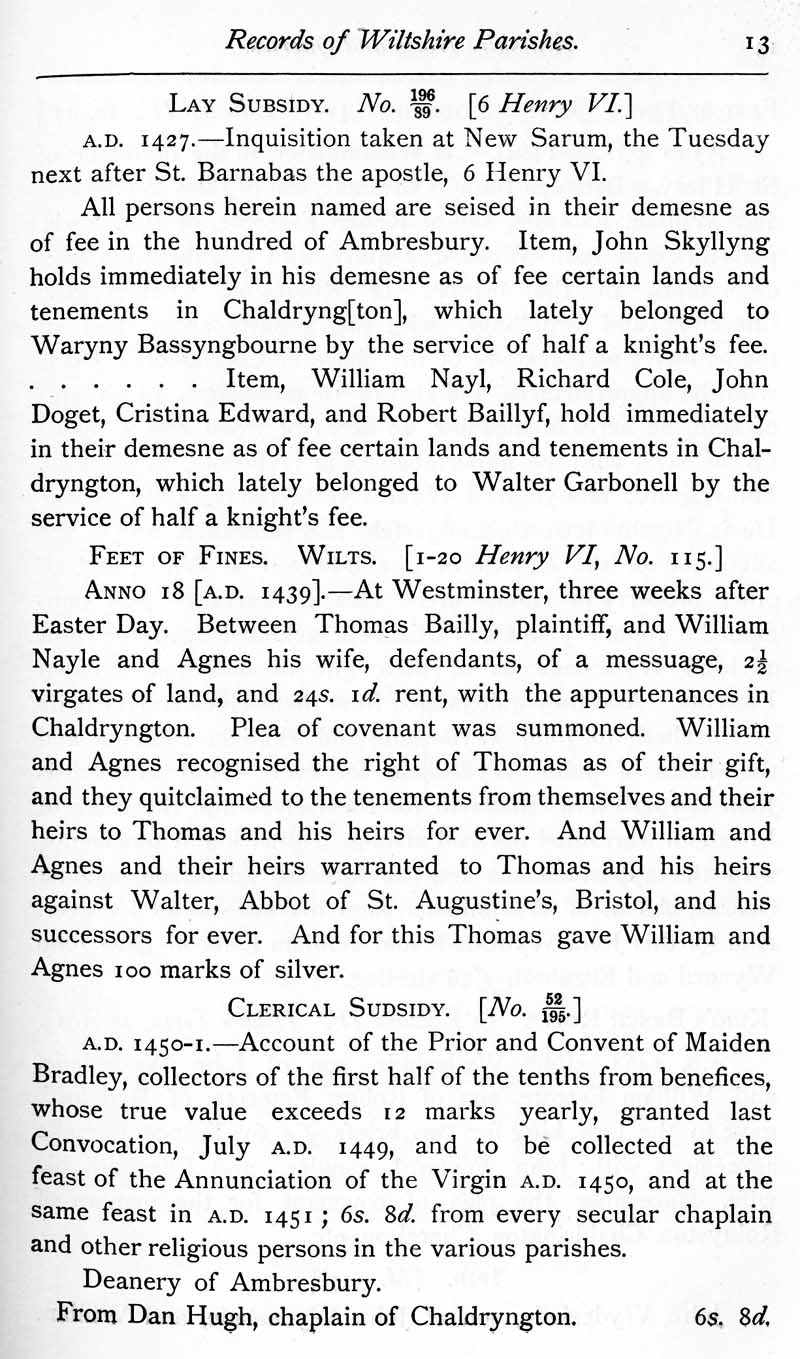Page 13 Records of Wiltshire parishes, Cholderton