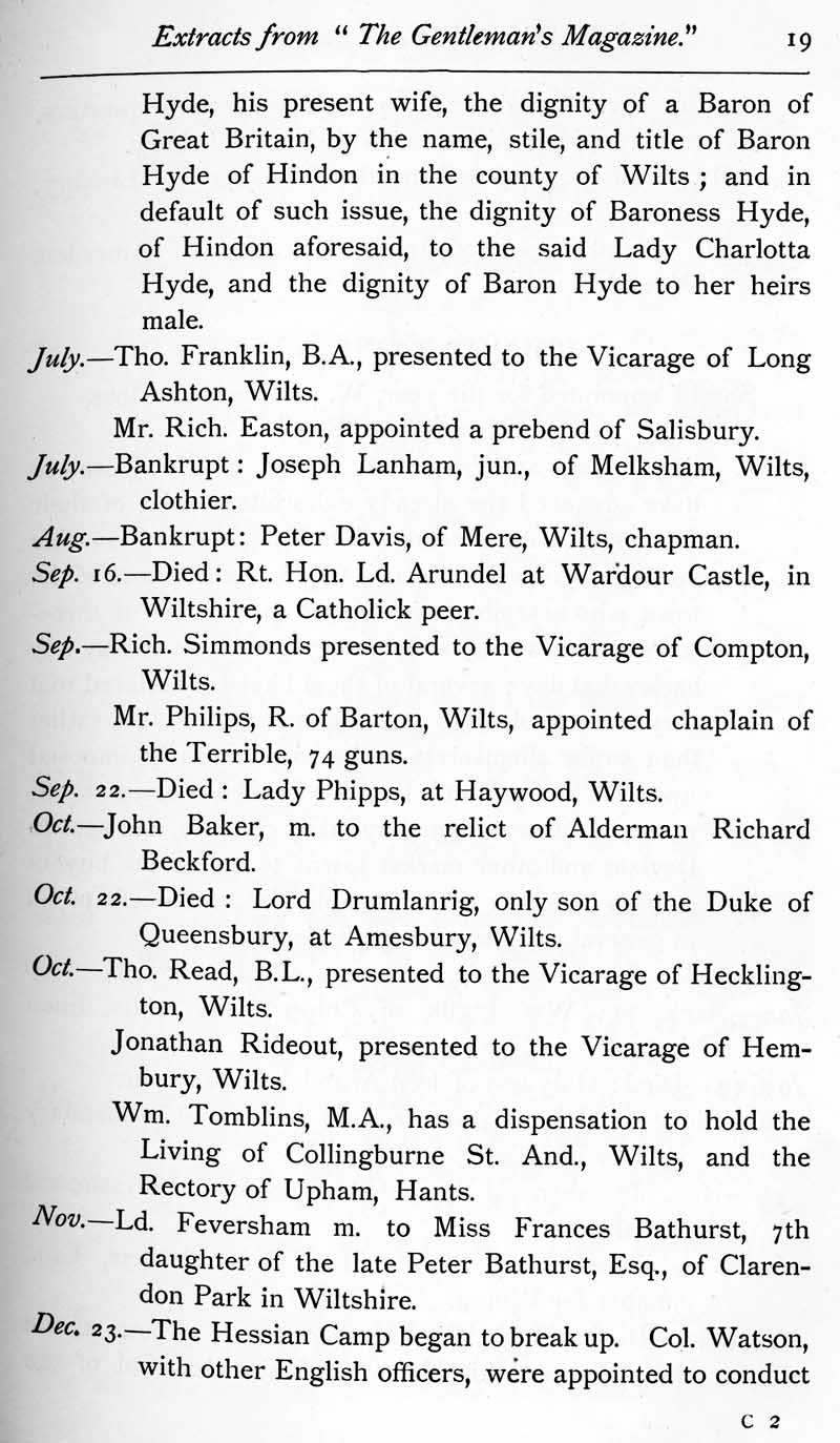 Page 19 Wiltshire extracts from the Gentleman's magazine, 1756-1757