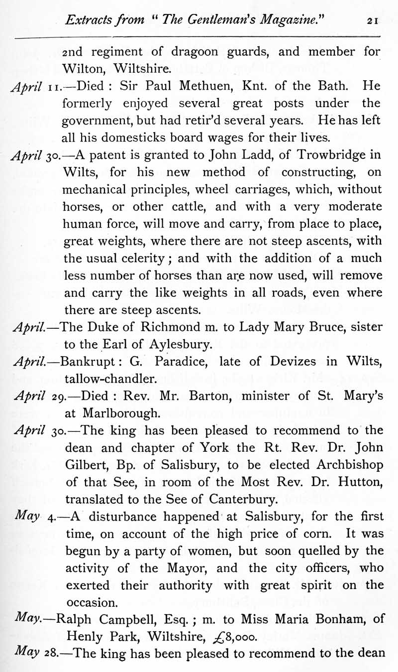 Page 21 Wiltshire extracts from the Gentleman's magazine, 1756-1757