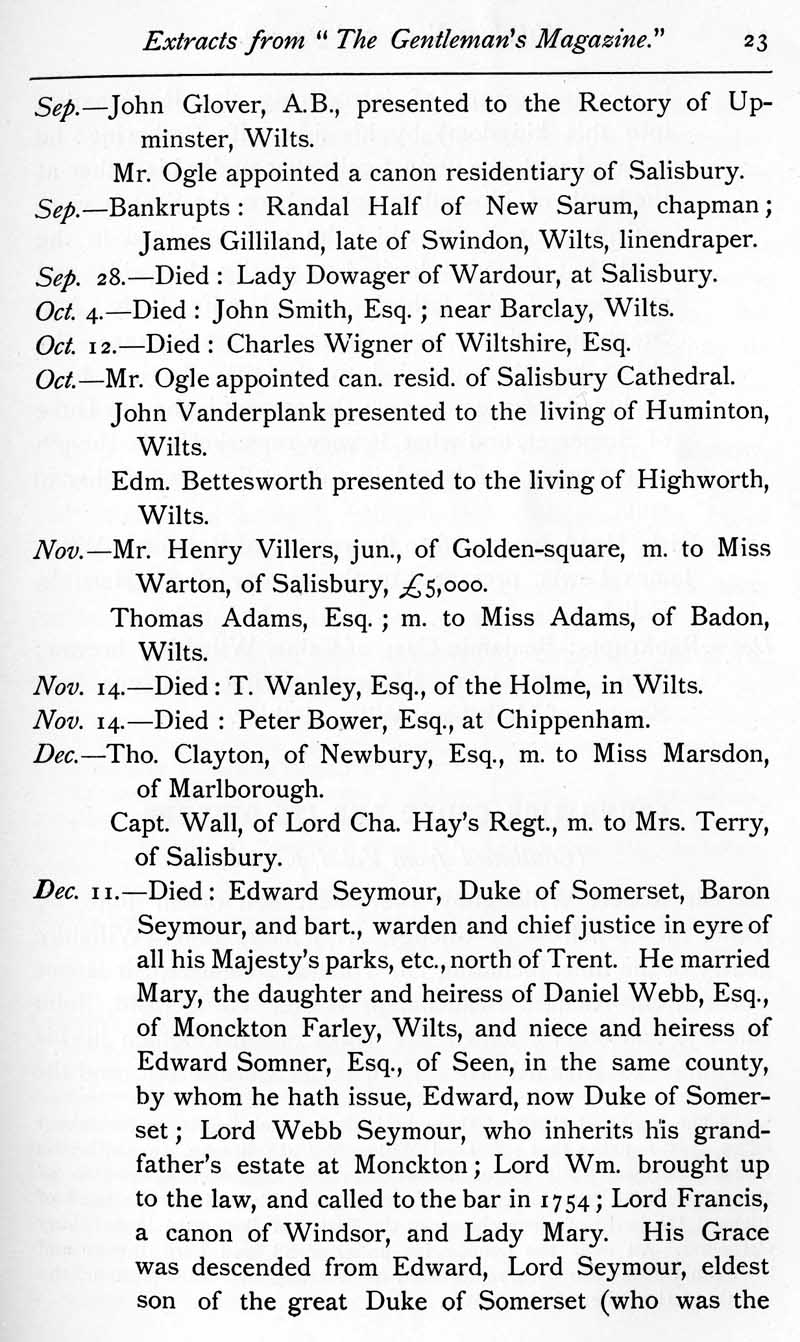 Page 23 Wiltshire extracts from the Gentleman's magazine, 1756-1757