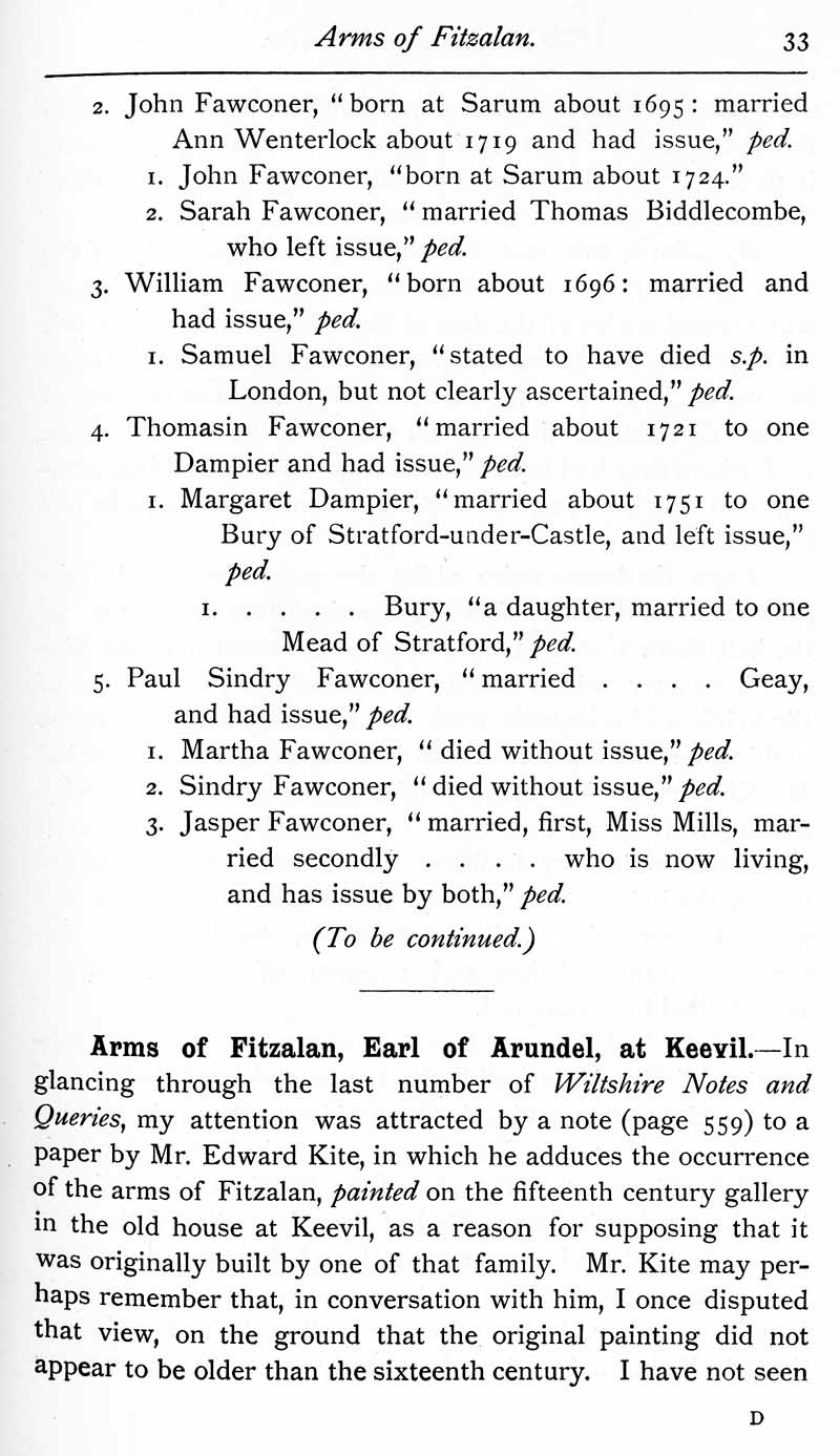 Page 33 Fawconer of Salisbury; Arms of Fitzalan, Earl of Arundell at Keevil