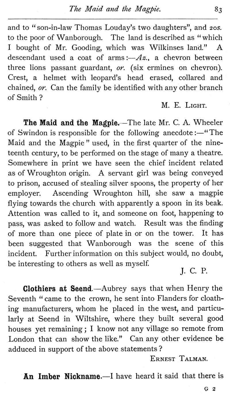 Page 36 Thomas Smith of Wanborough; Maid and the Magpie, Clothiers at Seend