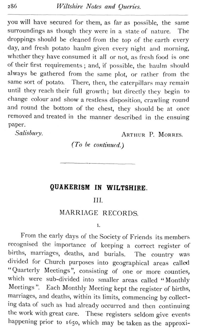 Page 34 Death's Head Hawk moth in Wiltshire; Quakers in Wiltshire, registers