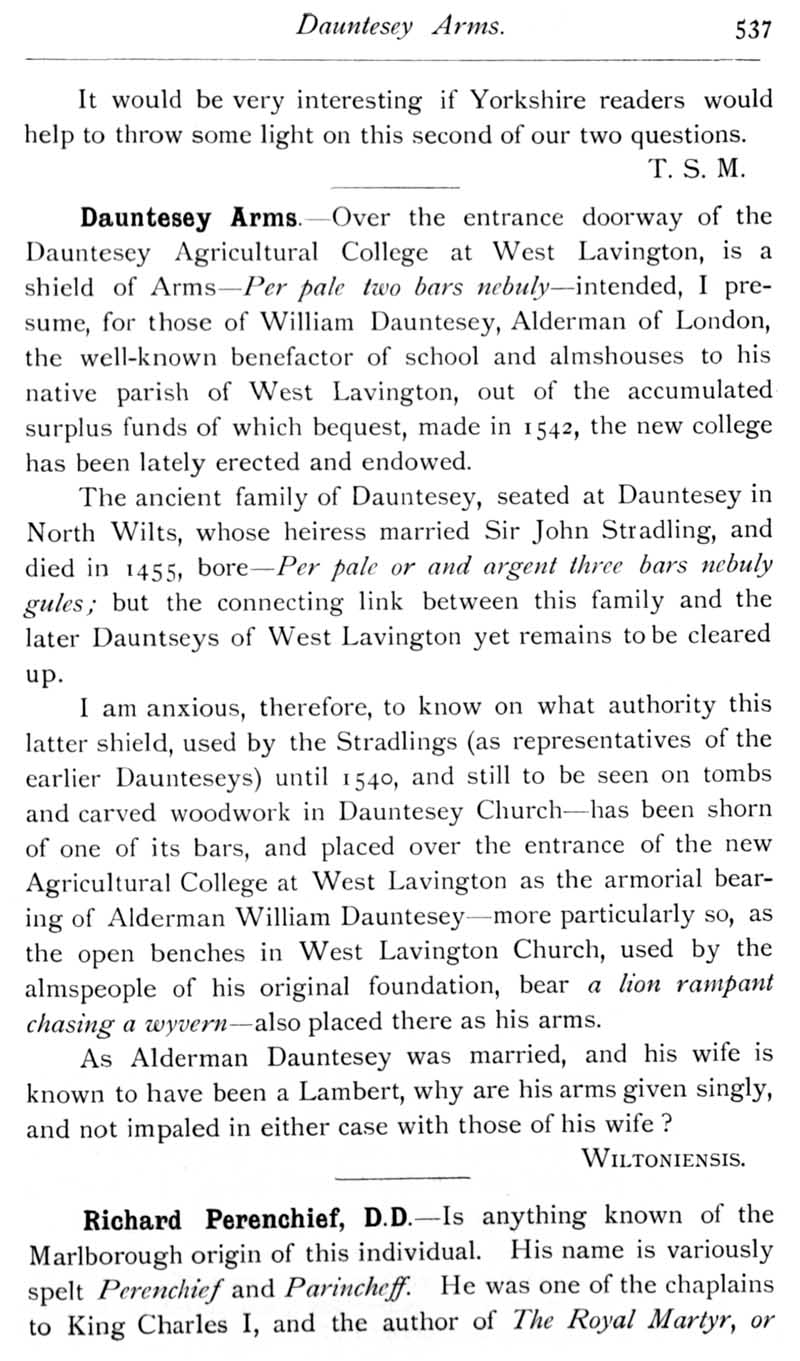 Page 44 Dauntesy (Dauntsey) arms at West Lavington