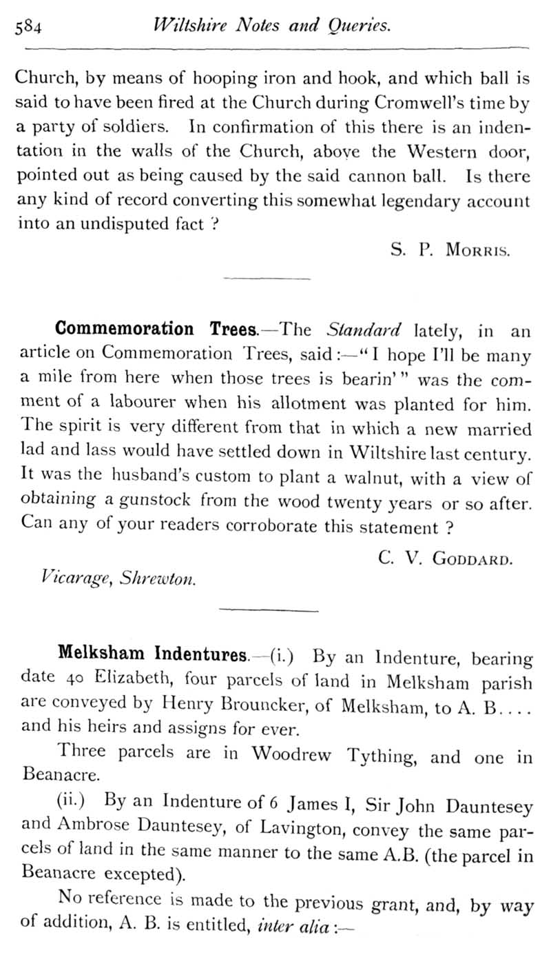 Page 43 Highworth church; Walnut trees; Melksham indentures