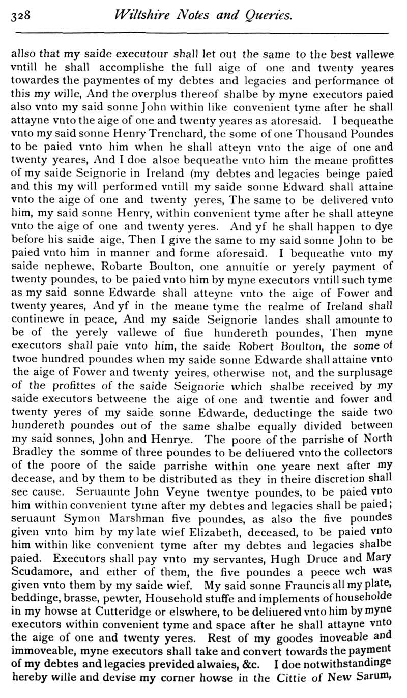 Page 41 Will of Francis Trenchard of Cutteridge, North Bradley